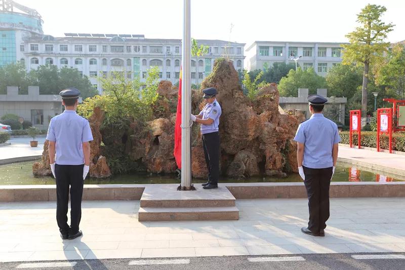 上午8时,升旗仪式正式开始。全体干警在升旗台前整装列队,肃穆而立。国旗护卫队迈着整齐的步伐,护送国旗走向升旗台。在雄壮豪迈的国歌声中,鲜艳的五星红旗冉冉升起,干警们满怀崇敬之情向国旗行注目礼,送上了对祖国最美好的祝福。
